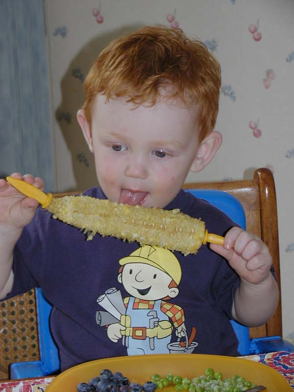 We were outside almost the entire month of July! We ended up having to lock all the doors because every time we'd turn around Christian would be trying to escape. He always wanted to go out and play, no matter what. He even tried his first piece of corn on the cob, but he mostly just licked it.