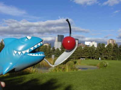 Dear Mom, Since my last letter, I have been searching the city high and low for my new shark friend who left abruptly left after our evening of indulgence. I'm not sure where to look. This must be Paul Bunyan's place, look at the size of the kitchen utensils!